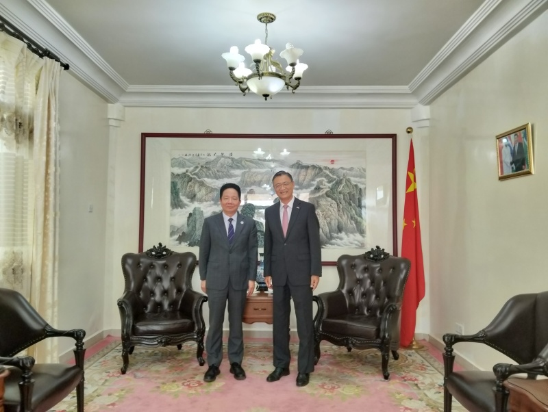 3月10日,刘晋大使会见联合国粮农组织(FAO)南南合作和三方合作司司长叶安平和粮农组织驻冈代表蓝佩蒂一行。